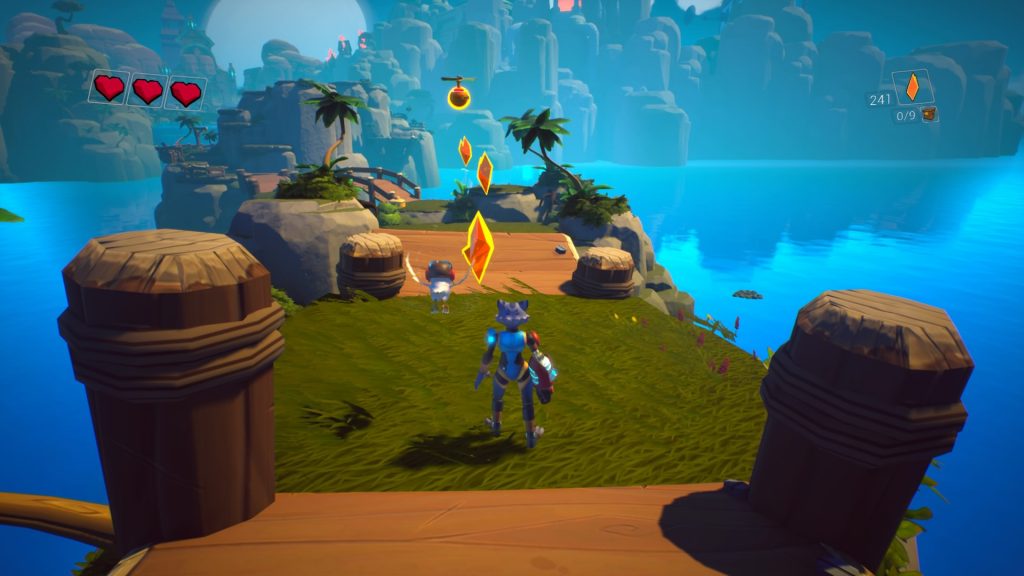 Proseguendo nell’avventura farete presto la conoscenza di Elder, paffuta gelatina ed anziano saggio dell’isola. Quest’ultima vi darà un’importante incarico: salvare tutti gli abitanti dell’isola intrappolati da CRT. Di fatto questi rappresenteranno per voi l’unico collezionabile del gioco, oltre ad essere una fonte di powerup, difatti ogni volta che libererete cinque degli animali ingabbiati potrete ottenere un cuore extra da Elder. I residenti, chiamati Lo’a, sono rinchiusi in delle gabbie e starà a voi liberarli, spendendo circa 100 gemme. Quest’ultime saranno utili unicamente a questo scopo, raccoglierle però vi permetterà di rigenerare i cuori a vostra disposizione.