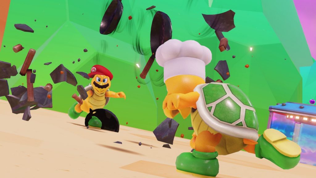 Come possiamo immaginare, la trama si baserà sul recupero della Principessa Peach, rapita dal malvagio Bowser, e toccherà a Mario salvare il Regno, ma vista l’abilità delle produzioni Nintendo di evolversi anche in fatto di trama, non escludiamo che questa formula venga modificata. Parliamo dunque di ciò di cui siamo certi, come del fatto che il cappello del protagonista, che si chiama Cappy, avrà poteri incredibili: lanciandolo contro un nemico, prenderemo possesso di esso, così da sfruttarlo per superare alcune sezioni di gioco, o semplicemente per mettere i baffi al Goomba di turno e farci qualche risata. Per il momento non sappiamo con certezza chi potremo controllare o meno, ma già dal trailer abbiamo visto un dinosauro con il cappello, dunque è logico pensare che solamente Bowser e i suoi diretti sottoposti saranno immuni a questo potere.