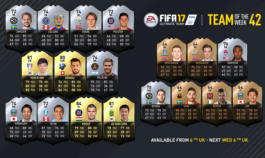 Come ogni settimana, alle 19 ore italiana di mercoledì esce la nuova Squadra della Settimana (abbreviata in TOTW) e oggi non abbiamo nessun rappresentante della serie A, o come viene chiamata su Fifa 17: Calcio A. Tra i vari calciatori, sicuramente dobbiamo notare Dzemaili che ha ricevuto un 80 di overall, passando poi a Yeom Ki Hun che ha raggiunto un 81 di valore complessivo e, per concludere, Lee Dong Gook ha ottenuto un 81 su carta.