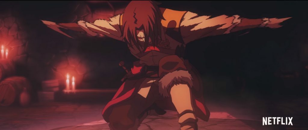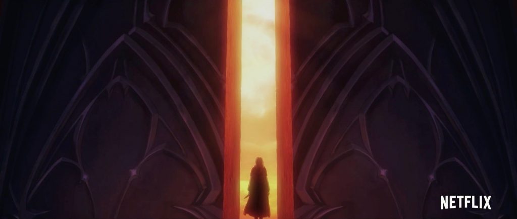 La sceneggiatura è ben scritta e a tratti raggiunge picchi veramente brillanti e ben congeniati. In Castlevania è presente una critica alla visione chiusa della Chiesa, che al posto di amare, odia. L’ira, il coraggio, l’esistenza di Dio e il potere assoluto. sono alcuni delle tematiche affrontante. Sarà pure una serie su Dracula, ma non è tutto cazzotti e sangue, alcuni argomenti trattati sono adulti e tuttora moderni. Le animazioni sono fluide e caratterizzate da uno stile nipponico, in linea con la saga videoludica. I colori sono caldi all’esterno, dando un senso di desolazione, e freddi all’interno emanando sensazioni di inquietudine. Principalmente osserviamo il villaggio di notte, unico momento in cui il conte può uscire, ed è illuminato dalla luna o da piccole fiaccole.