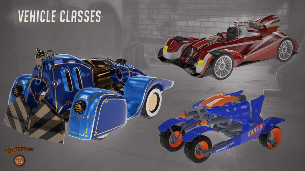Toygeddon รจ un Racing Online Battle Arena, un mix tra Rocket League e Overwatch, in quanto il gioco richiama elementi sia daiย Mobaย che daiย corsisitici: infatti per muoversi nellโ€™arena i giocattoli utilizzeranno dei veicoli. Lโ€™ambientazione usata dal team รจ quella di un centro commerciale. Allโ€™interno dellโ€™aerea Indie abbiamo potuto provare una demoย che permetteva di giocare localmente inย split screenย ad una partita in modalitร ย Keep the Battery, una sorta di โ€œcattura la bandieraโ€, in cui due squadre di giocatori dovranno contendersi delleย batterieย da raccogliere al centro della mappa e riportarle alla propria base, e allo stesso tempo cercare di difendere questโ€™ultima daย incursioni nemiche volte a recuperare i congegni giร  accumulati dalla squadra avversaria. I veicoli messi a disposizione erano di tre tipi con particolari abilitร  e bonus: avevamo una macchina piรน veloce ma meno resistente e maneggevole, una piรน resistente, quindi con piรน vita ma una minore velocitร , e infine lโ€™ultima che rappresentava la piรน bilanciata rispetto alle altre in termini di rapiditร , vita e resistenza.
