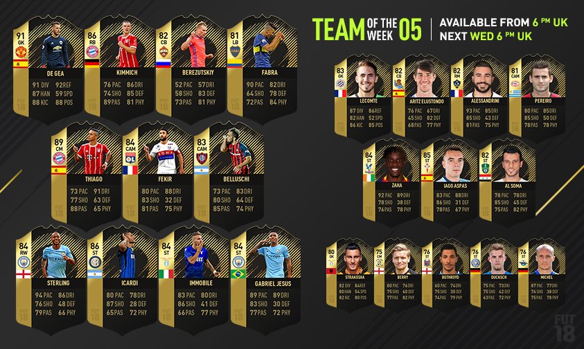 Ovviamente sono ben 23 i giocatori in-forma (qui la squadra completa) e possono arrivare da tutti i campionati, infatti dalla Premier League c’è David De Gea, mentre dalla Bundesliga arriva Thiago Alcantara e tanti altri calciatori sparsi per il mondo. Per ottenere queste carte ci sono due modi:
