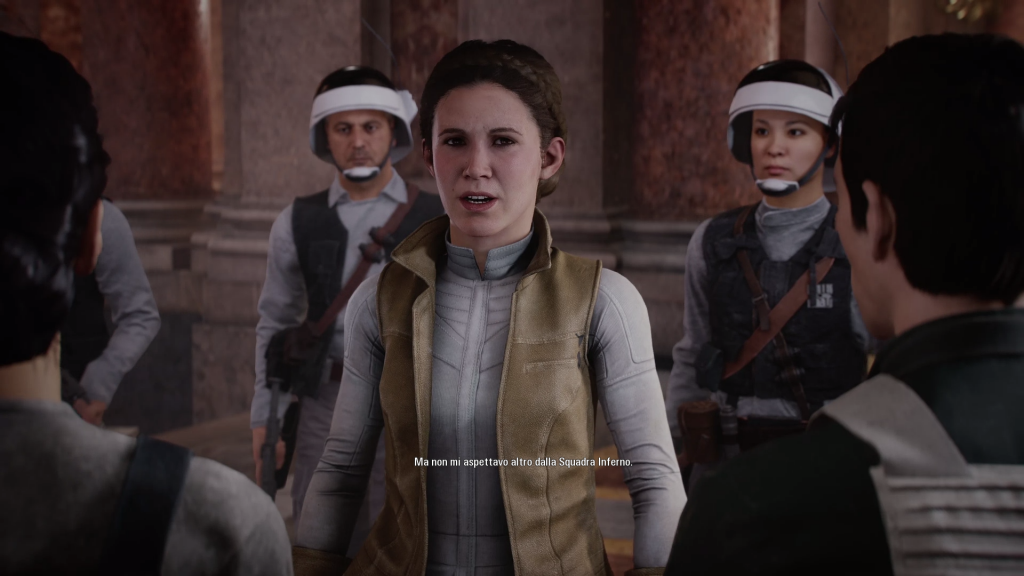 La campagna non cerca di essere particolare originale ma punta piuttosto a farvi apprendere come il titolo funziona, per prepararvi a quello che รจ poi il cuore pulsante del titolo: il multiplayer. La storia รจ comunque perfettamente godibile e cerca di accontentare in tutti i modi gli appassionati della saga. In alcuni momenti infatti impersonerete personaggi storici della saga, scostandovi momentaneamente dal punto di vista di Iden e godendovi un po di sano fan service senza troppo impegno. In alcune missioni sarete inoltre chiamati a combattere nello spazio a bordo dei veicoli piรน famosi della saga come i caccia TIE o gli X-Wing. Lo sviluppo di questa parte รจ stato dedicato al team anglosassone Criterion, sviluppatore della serie Burnout , potete star tranquilli dunque riguardo il loro effettivo valore, sono anzi probabilmente una delle cose piรน riuscite e divertenti del titolo. I comandi delle navicelle sono facili ed intuitivi e la loro mobilitร  รจ resa in maniera magistrale.
